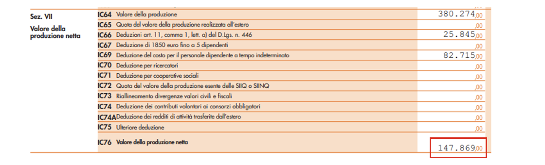 Come possiamo notare però il valore che viene riportato nel rigo IC76 è di euro 147.869 che è pari al valore della produzione concordata attraverso il Concordato Preventivo Biennale.