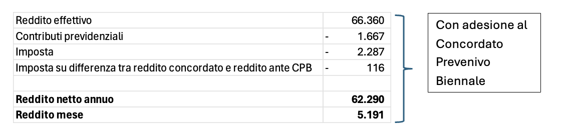 Se notiamo si tratta di un reddito ancora inferiore. Chiaramente per l’operatore del credito il valore più prudente e corretto è quest’ultimo in quanto la contribuzione INPS non viene agevolata in assenza di concordato preventivo fiscale!