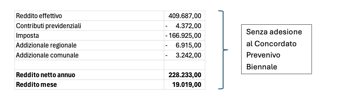 Se invece il contribuente non avesse aderito al Concordato il suo reddito disponibile sarebbe stato