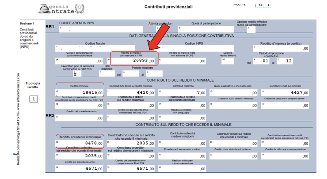 a versare i contributi previdenziali sul reddito effettivo. Nell’esempio che segue il contribuente ha optato per versare i contributi sul reddito concordato.